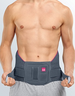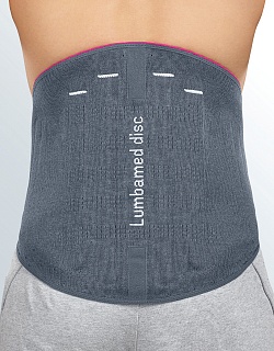 Поясничный бандаж-корсет создан для этапного лечения болей в поясничном отделе позвоночника. В остром периоде, т.н. прострел, используется бандаж с дополнительной стабилизирующей шиной. Этим достигается практически полная иммобилизация поясничного отдела позвоночника в положении, обеспечивающем уменьшение степени сдавления нервных корешков грыжей. По мере выздоровления стабилизирующую шину можно отстегнуть и пользоваться бандажем с динамическими ребрами жесткости, которые оградят поясничный отдел позвоночника от чрезмерной подвижности, способной спровоцировать новое обострение. При желании использовать бандаж постоянно с профилактической целью можно приобрести дополнительный комплект ребер жесткости меньшей упругости. Таким образом, Lumbamed disc дает возможность выбирать нужную степень стабилизации в зависимости от стадии лечения.